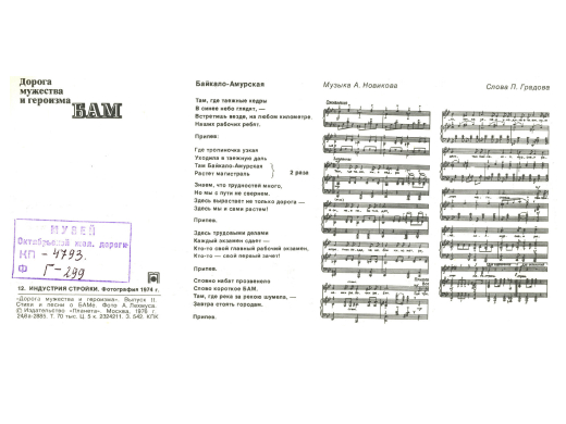 Были на стройке и свои музыкальные таланты. И немало: меньше чем за два года по всей линии строительства было продано 8 000 гитар! В те времена уметь играть на гитаре было хорошим тоном. Сами собой рождались песни — о красоте тайги, о трудовых подвигах, о ежедневных радостях и трудностях молодых строителей.