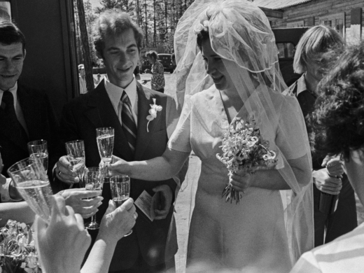 Вчера мы расписались в присутствии членов городского Совета и дорогих сердцу бамовских друзей, а потом отправились в кафе «Лесная сказка» черпать половником шампанское из огромной хрустальной вазы и разыгрывать капустник, где мне пришлось пеленать куклу, а Саше — рубить дрова. Балагурили совершенно по‑детски, чтобы запомнить на всю жизнь. Саша нёс меня полсотни ступенек на руках вверх по отсыпке, когда мы взбирались на мост. Перегородили на железной дороге путь машинисту тепловоза, попросив оторвать от его пиджака несколько блестящих пуговиц на счастье — так делают в Прибалтике, если молодожёнам встречается трубочист. Пусть у нас будет своя примета. И своё безграничное счастье!‥ Вечером спустились к реке и до самого рассвета пели под гитару у костра родные бамовские песни.