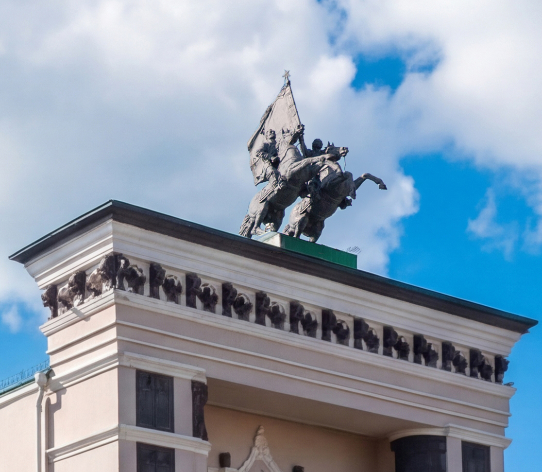 Неизменный интерес у гостей города вызывают живописный плафон зрительного зала работы художников Георгия Рублёва и Бориса Иорданского и скульптурная группа «Всадники» скульптора А. И. Тимона, расположенная над центральным порталом. Архитектура театра представляет собой удачный пример использования элементов национального бурятского убранства на общественных зданиях.
