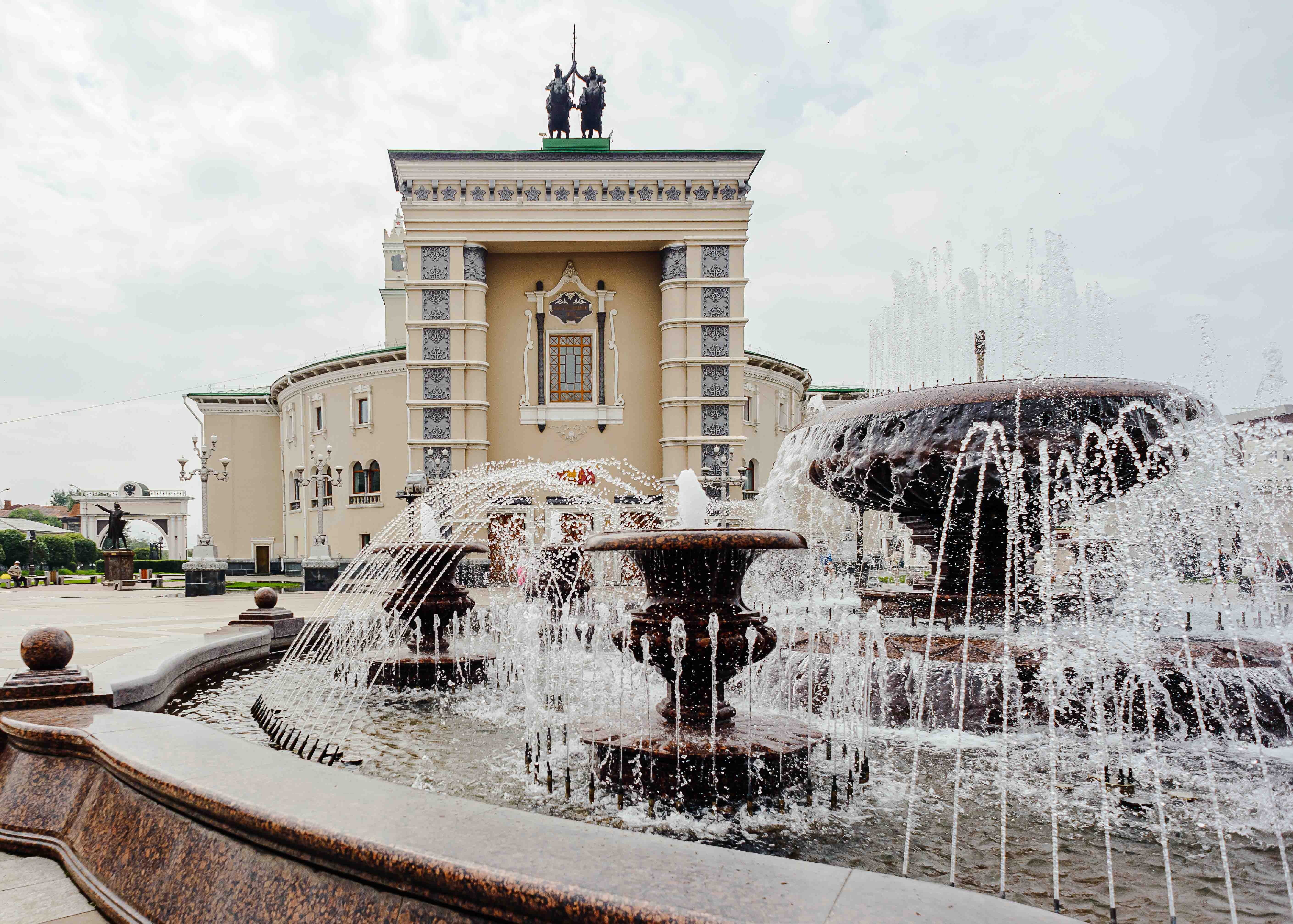 Если двигаться по проспекту в сторону реки Уды, тропа выведет к зданию Бурятского государственного академического театра драмы — одному из интересных советских примеров применения традиционного бурятского орнамента и декора в интерьерах и фасадах общественных зданий. Далее по проспекту расположен памятник Гэсэру — наиболее известному герою национального бурятского фольклора. А неподалёку от него находится финальная точка маршрута — место основания города, отмеченное памятным крестом в честь казаков-первопроходцев. Отсюда открывается прекрасный вид на исторические кварталы Улан-Удэ, а также на долину Уды и Селенги.