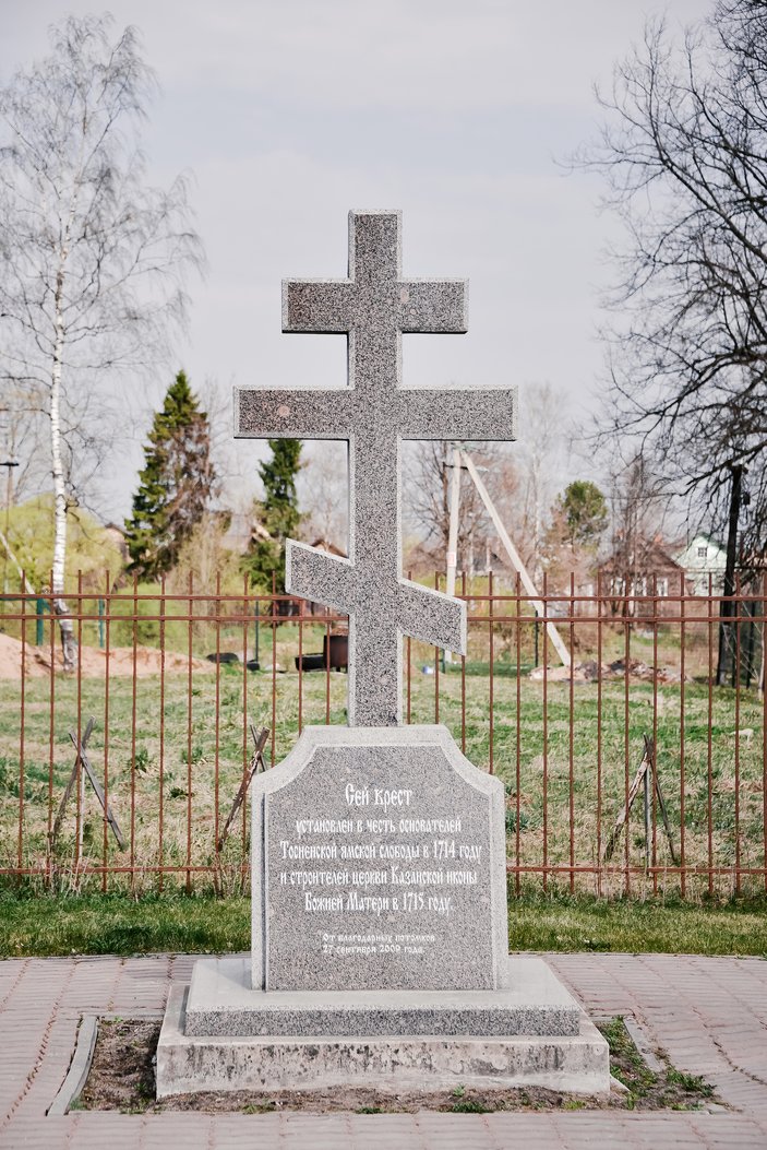 Поклонный крест в честь основателей Тосненской ямской слободы и строителей церкви Казанской иконы Божией Матери в 1715 году.
