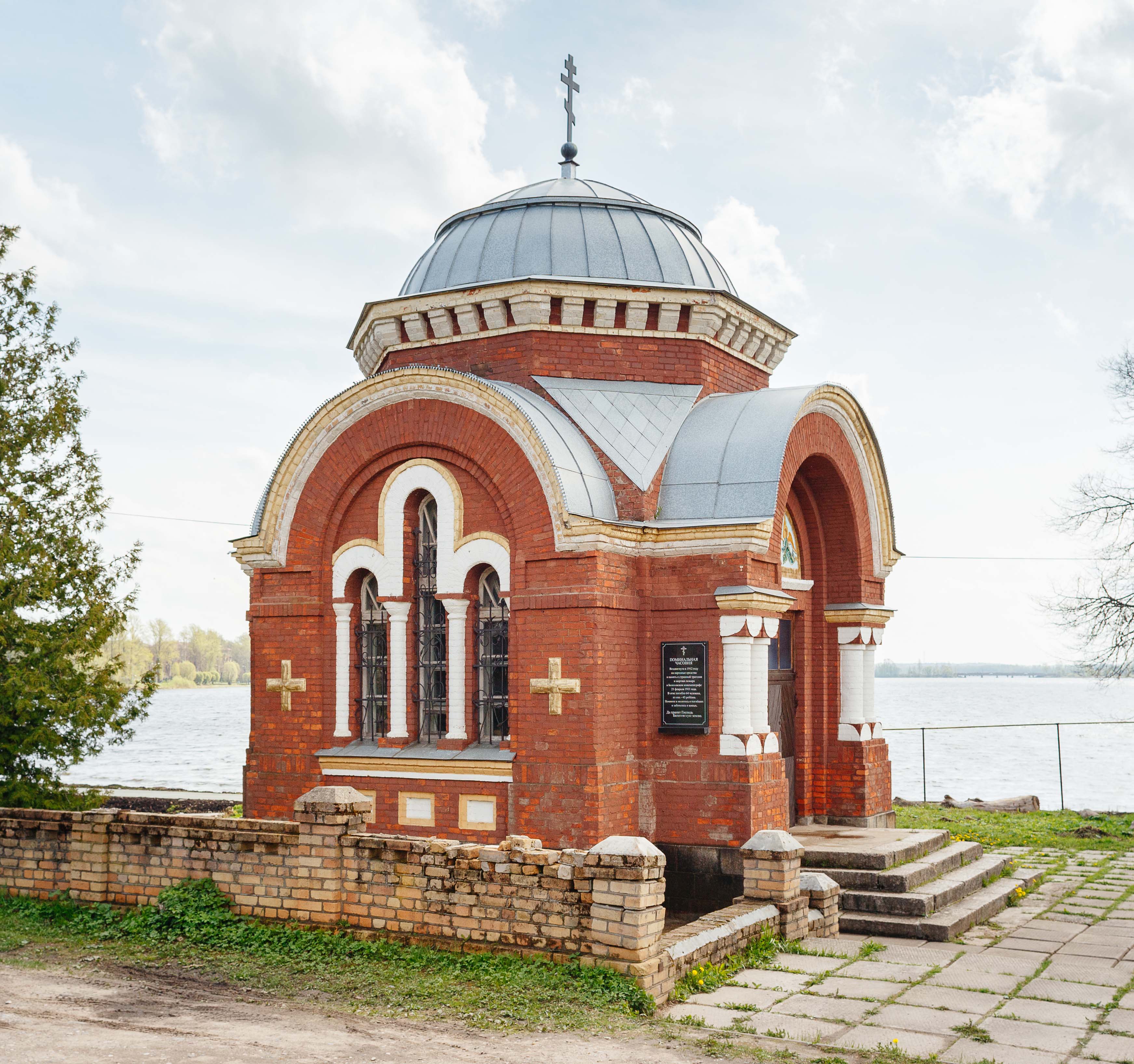 Эта часовня была построена в 1912 году на берегу озера Бологое в память о жителях города, погибших при пожаре 1911 года. Пожар случился в здании Добровольного пожарного общества во время киносеанса — показывали один из первых фильмов «Поезд идёт». Неожиданно киноплёнка вспыхнула, и огонь быстро распространился по всему зданию. В пожаре погибли 64 человека, больше половины из которых — дети. Многие умерли позже от ожогов, так что общее число жертв — 101 человек. Бологое тогда было погружено в глубокий траур, трагедия затронула почти каждый дом.
