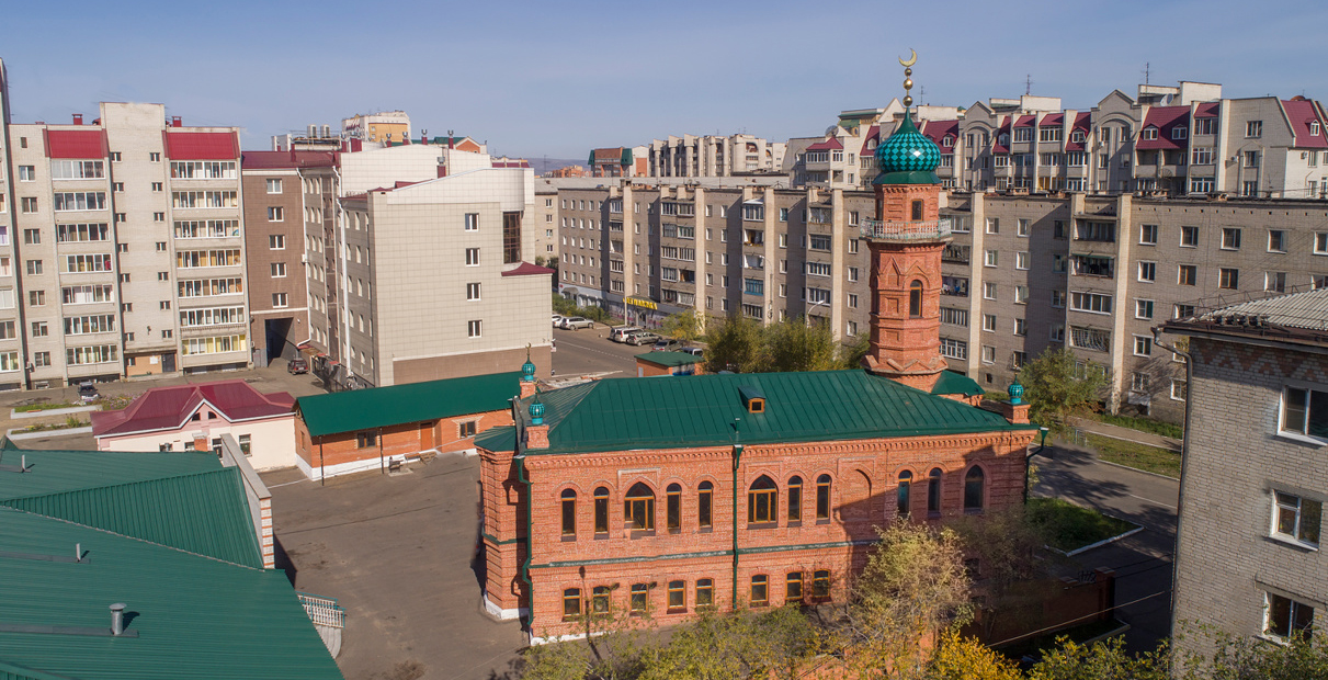 К южному торцевому фасаду здания примыкает пятигранный михраб — стенная ниша, указывающая молящимся направление на аравийский священный город Мекку, находящийся к юго-западу от Читы.