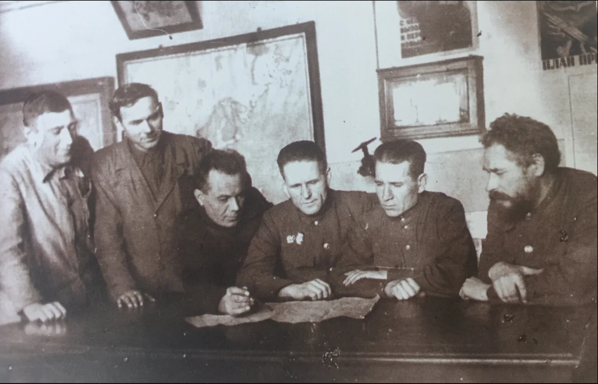 Руководство модельного цеха за чертежами на спецзадании фронта. Паровозоремонтный завод. Фотография из фонда Музея Истории Улан-Удэ